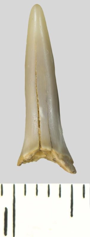 Зуб (фрагмент). Акула. Lamniformes gen. et sp. indet. Классификация: Хордовые Chordata, Позвоночные Vertebrata, Хрящевые рыбы Chondrichthyes, Пластиножаберные Elasmobranchii