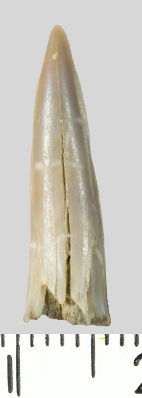 Зуб (фрагмент). Акула. Hispidaspis sp. Классификация: Хордовые Chordata, Позвоночные Vertebrata, Хрящевые рыбы Chondrichthyes, Пластиножаберные Elasmobranchii