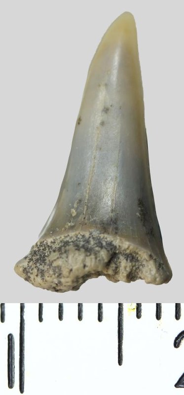 Зуб (фрагмент). Акула. Lamniformes gen. et sp. indet. Классификация: Хордовые Chordata, Позвоночные Vertebrata, Хрящевые рыбы Chondrichthyes, Пластиножаберные Elasmobranchii