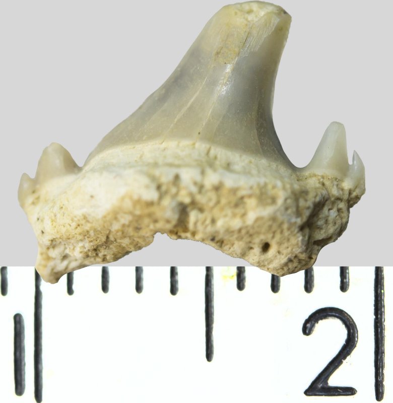 Зуб. Акула. Eostriatolamia sp. Классификация: Хордовые Chordata, Позвоночные Vertebrata, Хрящевые рыбы Chondrichthyes, Пластиножаберные Elasmobranchii