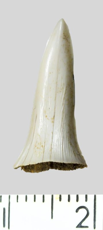 Зуб (фрагмент). Акула. Scapanorhynchus sp. Классификация: Хордовые Chordata, Позвоночные Vertebrata, Хрящевые рыбы Chondrichthyes, Пластиножаберные Elasmobranchii