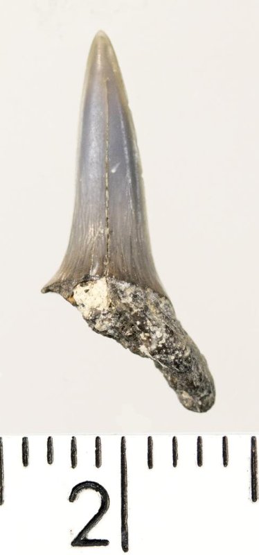 Зуб. Акула. Striatolamia elegans (Agassiz, 1838). Классификация: Хордовые Chordata, Позвоночные Vertebrata, Хрящевые рыбы Chondrichthyes, Пластиножаберные Elasmobranchii