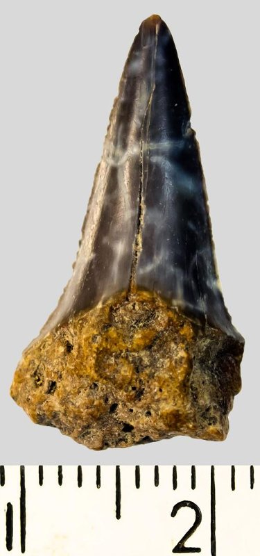 Зуб. Акула. Otodus subserratus (Agassiz, 1843). Классификация: Хордовые Chordata, Позвоночные Vertebrata, Хрящевые рыбы Chondrichthyes, Пластиножаберные Elasmobranchii