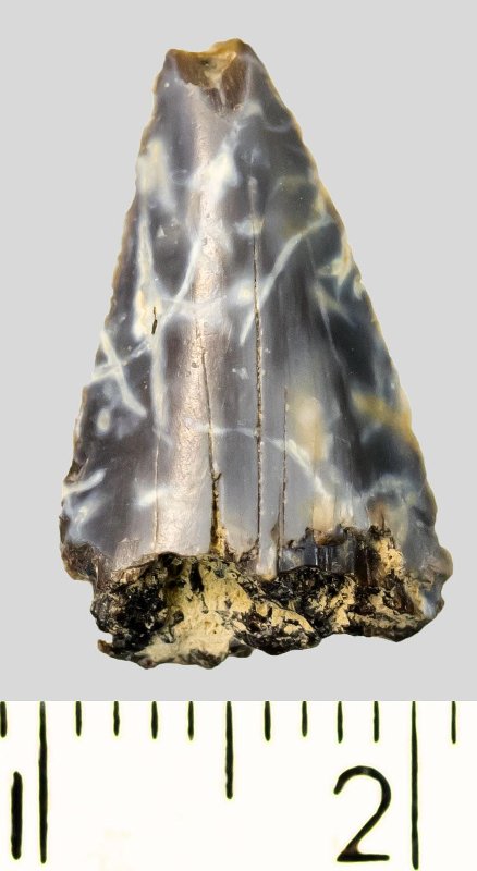 Зуб (фрагмент). Акула. Otodus subserratus (Agassiz, 1843). Классификация: Хордовые Chordata, Позвоночные Vertebrata, Хрящевые рыбы Chondrichthyes, Пластиножаберные Elasmobranchii