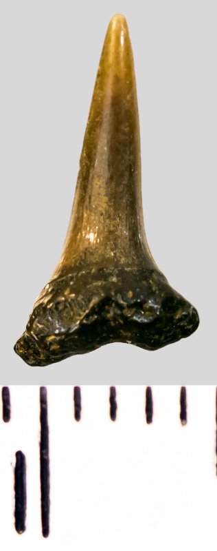 Зуб. Акула. Scapanorhynchus sp. Классификация: Хордовые Chordata, Позвоночные Vertebrata, Хрящевые рыбы Chondrichthyes, Пластиножаберные Elasmobranchii, Акулы Selachii, Ламнообразные Lamniformes