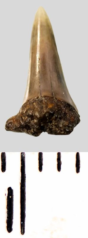 Зуб. Акула. Eostriatolamia subulata (Agassiz, 1843). Классификация: Хордовые Chordata, Позвоночные Vertebrata, Хрящевые рыбы Chondrichthyes, Пластиножаберные Elasmobranchii, Акулы Selachii, Ламнообразные Lamniformes, Песчаные акулы Odontaspididae