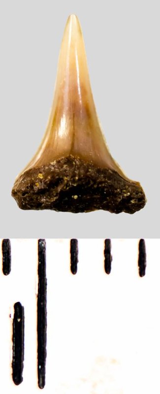 Зуб. Акула. Eostriatolamia subulata (Agassiz, 1843). Классификация: Хордовые Chordata, Позвоночные Vertebrata, Хрящевые рыбы Chondrichthyes, Пластиножаберные Elasmobranchii, Акулы Selachii, Ламнообразные Lamniformes, Песчаные акулы Odontaspididae