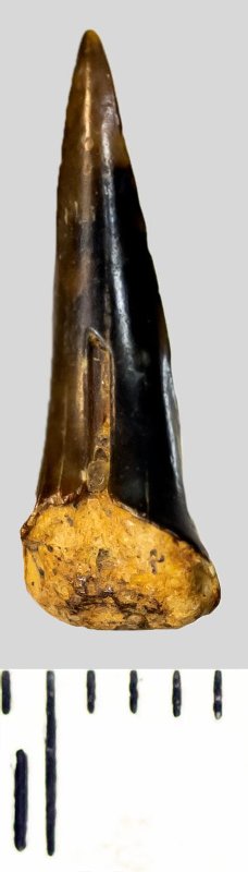 Зуб (фрагмент). Акула. Striatolamia macrota (Agassiz, 1843)