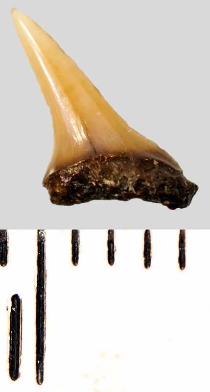 Зуб. Акула. Eostriatolamia subulata (Agassiz, 1843). Классификация: Хордовые Chordata, Позвоночные Vertebrata, Хрящевые рыбы Chondrichthyes, Пластиножаберные Elasmobranchii, Акулы Selachii, Ламнообразные Lamniformes, Песчаные акулы Odontaspididae