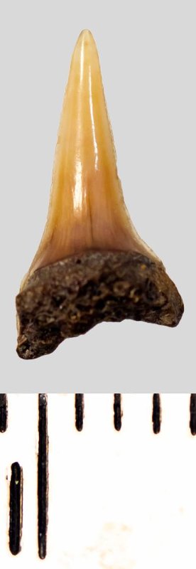 Зуб. Акула. Eostriatolamia subulata (Agassiz, 1843). Классификация: Хордовые Chordata, Позвоночные Vertebrata, Хрящевые рыбы Chondrichthyes, Пластиножаберные Elasmobranchii, Акулы Selachii, Ламнообразные Lamniformes, Песчаные акулы Odontaspididae
