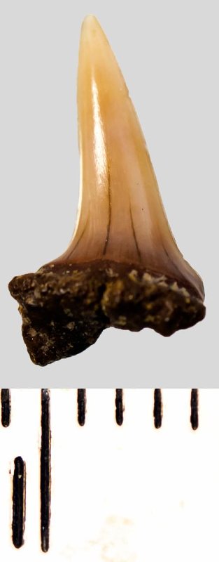 Зуб. Акула. Eostriatolamia subulata (Agassiz, 1843). Классификация: Хордовые Chordata, Позвоночные Vertebrata, Хрящевые рыбы Chondrichthyes, Пластиножаберные Elasmobranchii, Акулы Selachii, Ламнообразные Lamniformes, Песчаные акулы Odontaspididae