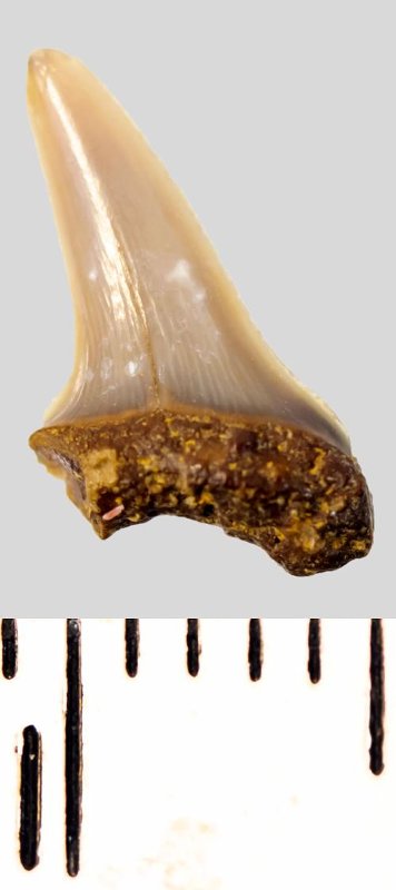 Зуб. Акула. Eostriatolamia subulata (Agassiz, 1843). Классификация: Хордовые Chordata, Позвоночные Vertebrata, Хрящевые рыбы Chondrichthyes, Пластиножаберные Elasmobranchii, Акулы Selachii, Ламнообразные Lamniformes, Песчаные акулы Odontaspididae