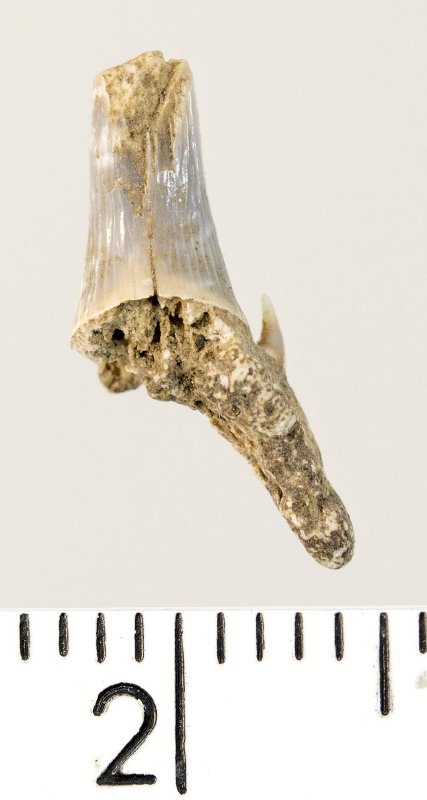 Зуб. Акула. Hypotodus sp. Классификация: Хордовые Chordata, Позвоночные Vertebrata, Хрящевые рыбы Chondrichthyes, Пластиножаберные Elasmobranchii