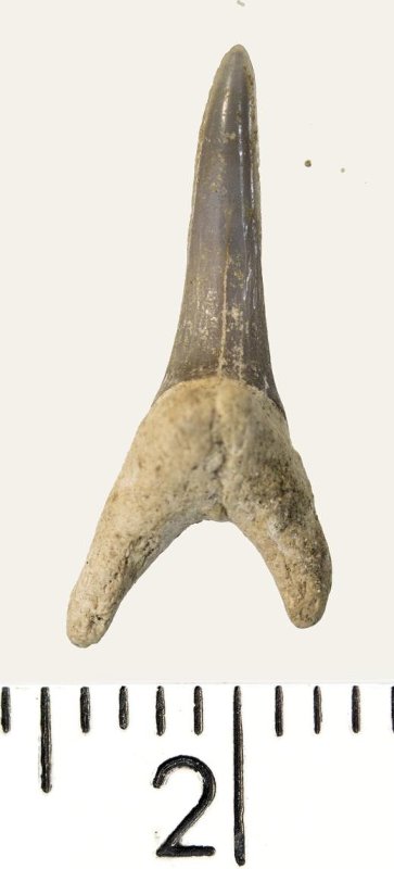 Зуб. Акула. Hypotodus sp. Классификация: Хордовые Chordata, Позвоночные Vertebrata, Хрящевые рыбы Chondrichthyes, Пластиножаберные Elasmobranchii