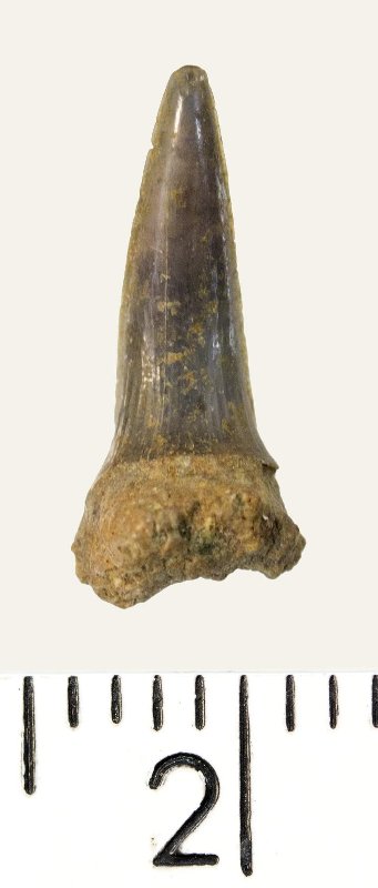 Зуб. Акула. Hypotodus sp. Классификация: Хордовые Chordata, Позвоночные Vertebrata, Хрящевые рыбы Chondrichthyes, Пластиножаберные Elasmobranchii