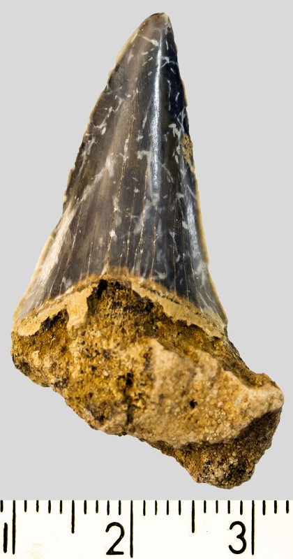 Зуб. Акула. Otodus subserratus (Agassiz, 1843). Классификация: Хордовые Chordata, Позвоночные Vertebrata, Хрящевые рыбы Chondrichthyes, Пластиножаберные Elasmobranchii