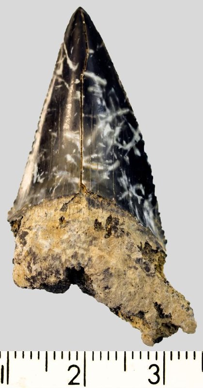 Зуб. Акула. Otodus subserratus (Agassiz, 1843). Классификация: Хордовые Chordata, Позвоночные Vertebrata, Хрящевые рыбы Chondrichthyes, Пластиножаберные Elasmobranchii