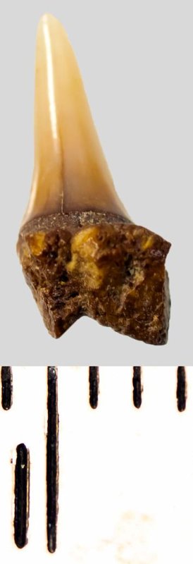 Зуб. Акула. Eostriatolamia subulata (Agassiz, 1843). Классификация: Хордовые Chordata, Позвоночные Vertebrata, Хрящевые рыбы Chondrichthyes, Пластиножаберные Elasmobranchii, Акулы Selachii, Ламнообразные Lamniformes, Песчаные акулы Odontaspididae