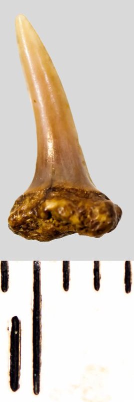 Зуб. Акула. Eostriatolamia subulata (Agassiz, 1843). Классификация: Хордовые Chordata, Позвоночные Vertebrata, Хрящевые рыбы Chondrichthyes, Пластиножаберные Elasmobranchii, Акулы Selachii, Ламнообразные Lamniformes, Песчаные акулы Odontaspididae
