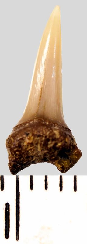 Зуб. Акула. Eostriatolamia subulata (Agassiz, 1843). Классификация: Хордовые Chordata, Позвоночные Vertebrata, Хрящевые рыбы Chondrichthyes, Пластиножаберные Elasmobranchii, Акулы Selachii, Ламнообразные Lamniformes, Песчаные акулы Odontaspididae