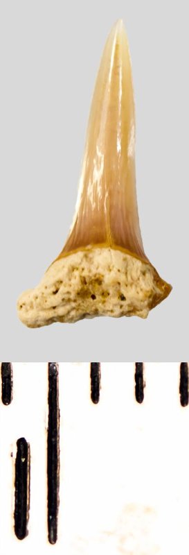 Зуб. Акула. Eostriatolamia subulata (Agassiz, 1843). Классификация: Хордовые Chordata, Позвоночные Vertebrata, Хрящевые рыбы Chondrichthyes, Пластиножаберные Elasmobranchii, Акулы Selachii, Ламнообразные Lamniformes, Песчаные акулы Odontaspididae