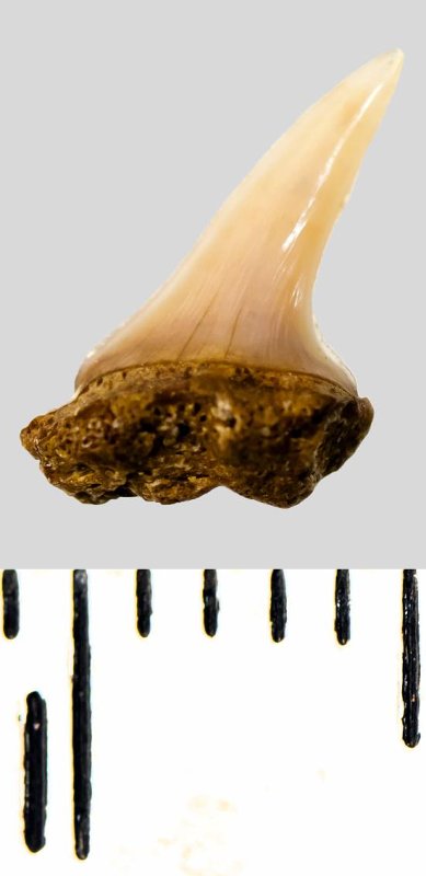 Зуб. Акула. Eostriatolamia subulata (Agassiz, 1843). Классификация: Хордовые Chordata, Позвоночные Vertebrata, Хрящевые рыбы Chondrichthyes, Пластиножаберные Elasmobranchii, Акулы Selachii, Ламнообразные Lamniformes, Песчаные акулы Odontaspididae