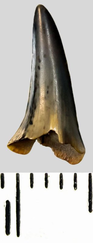 Зуб (фрагмент). Акула. Striatolamia macrota (Agassiz, 1843)