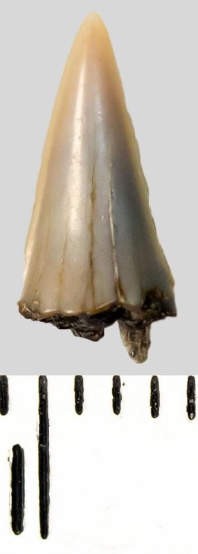 Зуб (фрагмент). Акула. Striatolamia macrota (Agassiz, 1843)