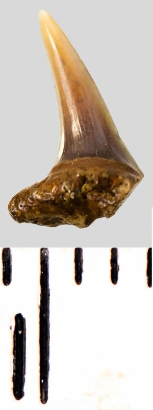 Зуб. Акула. Eostriatolamia subulata (Agassiz, 1843). Классификация: Хордовые Chordata, Позвоночные Vertebrata, Хрящевые рыбы Chondrichthyes, Пластиножаберные Elasmobranchii, Акулы Selachii, Ламнообразные Lamniformes, Песчаные акулы Odontaspididae