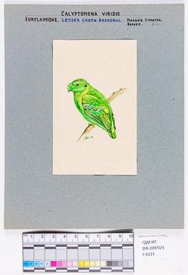 Малый зелёный рогоклюв. Calyptomena viridis. Рисунок