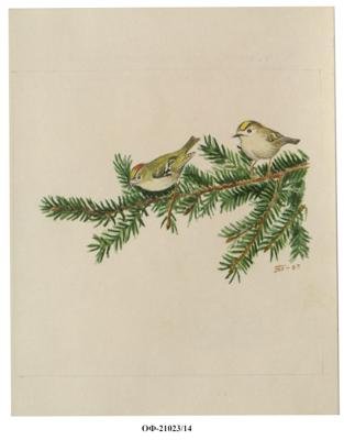 Желтоголовые корольки, самец и самка. Regulus regulus. Рисунок