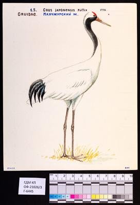 Японский журавль, или маньчжурский журавль. Grus japonensis. Рисунок