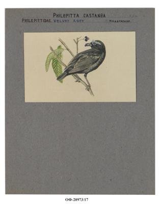 Бархатистая филепитта. Philepitta castanea. Рисунок