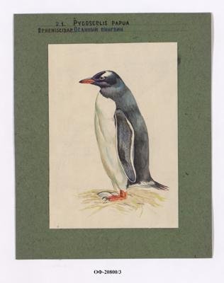 Ослиный пингвин (субантарктический, или папуанский пингвин). Pygoscelis papua. Рисунок