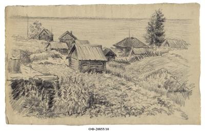 Деревенский пейзаж. Рисунок