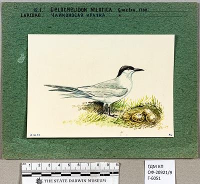 Чайконосая крачка у гнезда. Gelochelidon nilotica. Рисунок