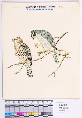 Два ястреба-тетеревятника. Accipiter gentilis. Рисунок