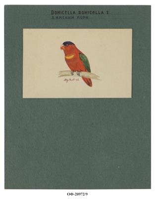 Пурпурношапочный широкохвостый лори. Lorius domicella. Рисунок