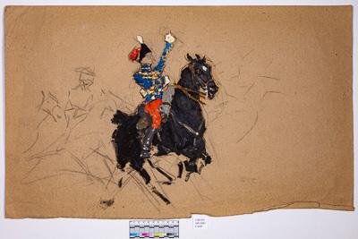 Гусар 1-го Сумского полка в парадной форме верхом на коне. Рисунок