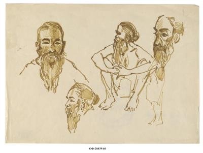 Зарисовки местного жителя в разных ракурсах. Рисунок