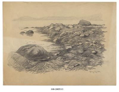 Берег моря. Камни и фукусы. Рисунок