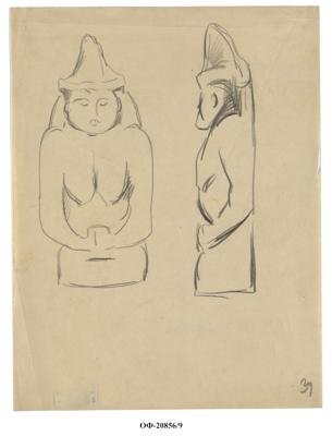 Зарисовка половецкой каменной бабы в фас и профиль. Рисунок