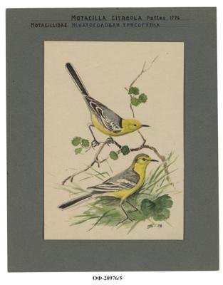 Желтоголовые трясогузки. Motacilla citreola. Рисунок