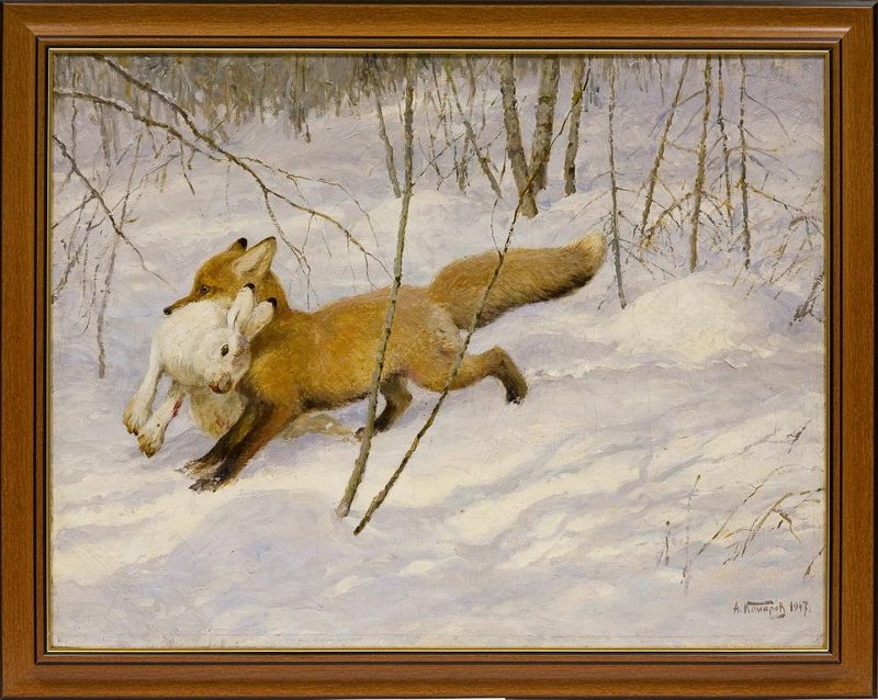 Лисица с добычей. Картина