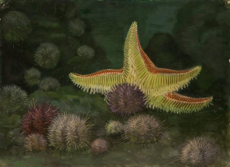 Морская звезда [поедает морского ежа]. Hypasteria phrigiana. Картина