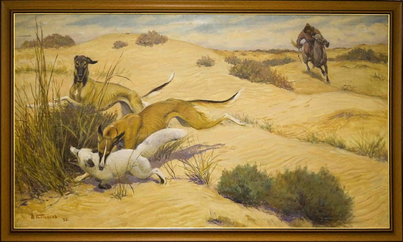 Охота на лисиц в Средней Азии. [Охота на лисицу-альбиноса в Средней Азии]. Картина