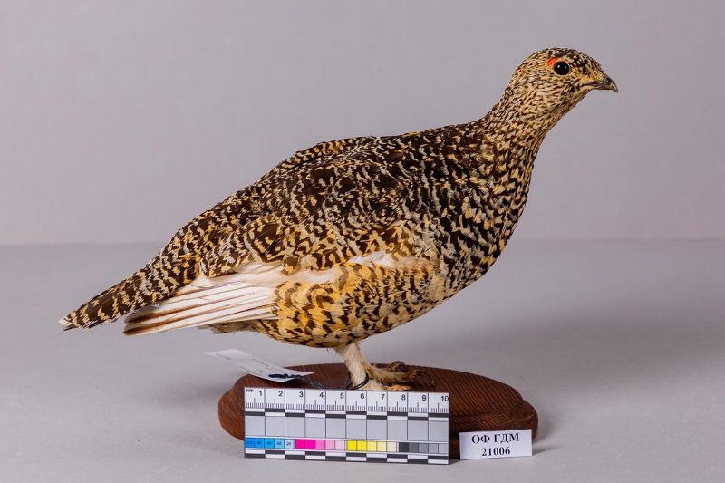 Чучело. Тундряная куропатка. Lagopus muta (Montin,1781). Классификация: Хордовые Chordata, Позвоночные Vertebrata, Птицы Aves, Курообразные Galliformes, Тетеревиные Tetraonidae, Тундряная куропатка Lagopus muta (Montin,1781)
