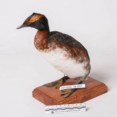 Чучело. Красношейная поганка. Podiceps auritus (L.,1758). Классификация: Хордовые Chordata, Позвоночные Vertebrata, Птицы Aves, Поганкообразные Podicipediformes, Поганковые Podicipedidae, Красношейная поганка Podiceps auritus (L.,1758)