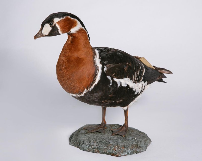 Чучело. Краснозобая казарка. Rufibrenta ruficollis (Pallas,1769). Классификация: Хордовые Chordata, Позвоночные Vertebrata, Птицы Aves, Гусеобразные Anseriformes, Утиные Anatidae, Краснозобая казарка Branta ruficollis (Pallas,1769)