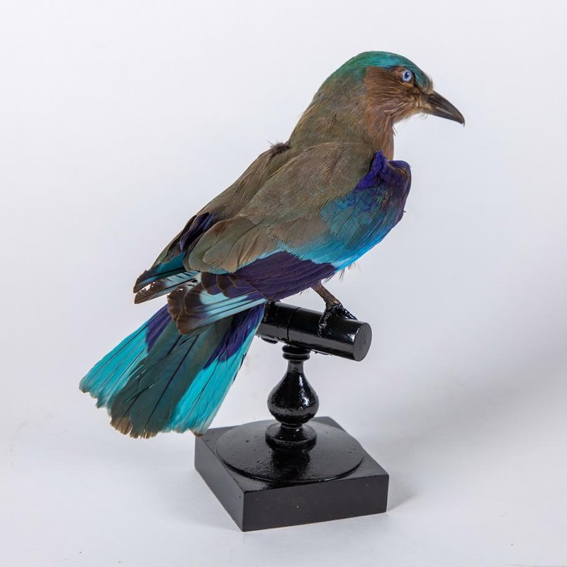 Чучело. Бенгальская сизоворонка. Coracias benghalensis L.,1758. Классификация: Хордовые Chordata, Позвоночные Vertebrata, Птицы Aves, Ракшеобразные Coraciiformes, Сизоворонковые Coraciidae, Бенгальская сизоворонка Coracias benghalensis (L.,1758)